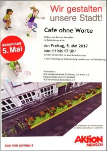 an der Aktion “Prostesttag zur Gleichstellung von Menschen mit Behinderungen” unter dem Motto “Wir gestalten unsere Stadt”.