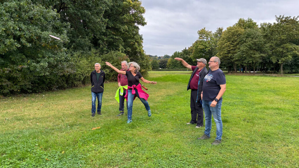 Die Aktiv-&-Gesund-Gruppe kam am Obersee zu einer Runde Discgolf zusammen.
