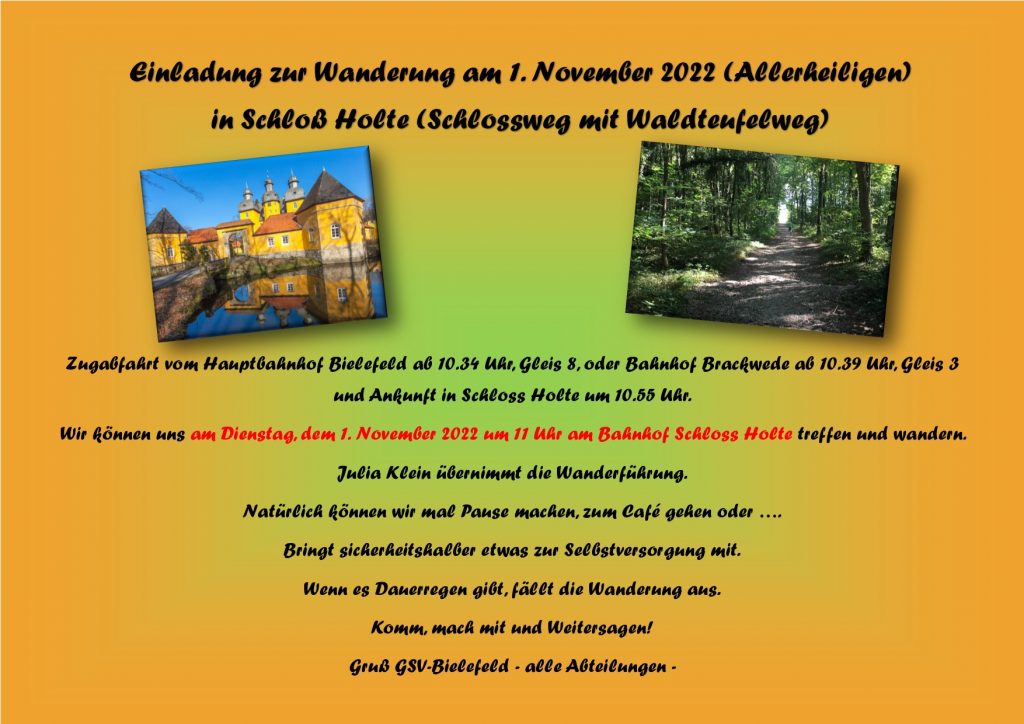 Einladung zur Wanderung am 1. Nov. (Allerheiligen) in Schloss Holte