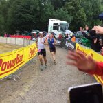 Am frühen Abend ging es wieder zurück zur Unterkunft, schließlich stand für Martin am Sonntagmorgen um 9.30 Uhr sein Start über die Olympische Distanz (1,5km Schwimmen, 40km Radfahren, 10km Laufen). Mit einer Portion Nervosität bereitete er sich akribisch auf den Start vor. Alles musste in der Wechselzone an seinem Platz sein, nichts durfte bei dem Wechsel zur anderen Disziplin schief gehen. Es galt für Martin den DM Titel in der AK45 zu verteidigen. Kurz vor dem Start wendete plötzlich sich das Wetter, Regen fiel und es wurde merklich kühler, der See bildete ordentlich Wellen. Als nach dem lauten Böllerschuss das Teilnehmerfeld ins Wasser gelassen wurde, hatte so jeder Triathlet mit den erschwerten Bedingungen zu kämpfen gehabt. Martin fand in den Gewässern leider wenig Orientierung, er kam mit über 1-2min Rückstand gegenüber seinen Konkurrenten aus dem Wasser. Nicht einfacher wurde die Situation nach dem Wechsel auf das Rad. Die Straßen waren vom Dauerregen durchnässt. In den Kurven mussten die Sportler aufpassen, auf den schmalen Reifen nicht wegzurutschen. Martin kam unfallfrei durch und konnte auf seinem erst im Mai dieses Jahres gekauften Triathlon-Zeitfahrmaschine Gerrit Besselink vom GSV Münster überholen und blieb beim Wechsel zum Laufen knapp hinter dem Führenden der AK45 Volker Marks, ebenfalls vom GSV Münster. Es deutete auf eine spannende Entscheidung ins Ziel an. So sollte es auch kommen. Wenige hundert Meter vorm Ziel hatte sich Martin an Volker herangekämpft. In der vorletzten langgezogene Kurve, etwa 150m vorm Ziel, versuchte Martin ihn außen herum zu überholen. Das gelang ihm kurzzeitig, da Volker sichtlich überrascht erst registrieren musste, dass es jetzt um alles oder nichts ging. In der letzten 180° Grad Kurve bahnte sich ein kleines Hindernis an, die Innenkurve war nämlich Fußhoch mit Wasser überschwemmt gewesen. Martin wählte die sichere Variante, außen herum ins Ziel zu sprinten. Bloß nicht ausrutschen. Während Volker alles riskierte und den kürzeren Weg durch das Wasser nahm. Diesen entscheidenden Vorteil brachte Volker als Sieger mit 1,4 Sekunden Vorsprung über die Ziellinie. Schade, dass Martin für seinen Kampf nicht belohnt wurde. Im Nachhinein war das schlechte Abschneiden im Schwimmen und schlechtes Timing in der Wechselzone ausschlaggebend, wo die Zeit am Ende fehlte. Als später bei der Ehrung Martin die Silbermedaille für seine Deutsche Vizemeisterschaft umgehängt wurde, konnte er wieder lächeln. Herzlichen Glückwunsch!