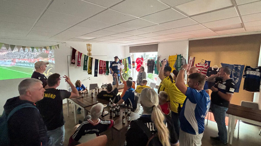 Der Raum war liebevoll mit Schals 🧣 und Trikots 👕 dekoriert.