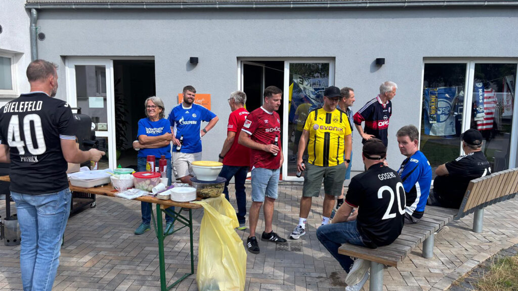 Auch das Wetter ☀️ spielte mit, sodass wir auch draußen stehen und uns über Fußball ⚽, Quizspiel und viele andere Themen unterhalten konnten. 🗣️🍻