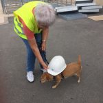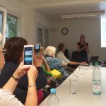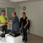 Herr Hönnig vermittelte die wichtigsten Daten und Fakten rund um die Schleusen in Minden. Nach einem Vortrag mit interessanten Bildern und einem Kurzfilm, durften alle eine gelbe Warnweste anziehen. Wahlweise einen weißen Bauhelm, für die Ängstlichen innerhalb der Gruppe. Zwei Teilnehmer schlüpften in gelbe Gummistiefel.