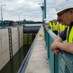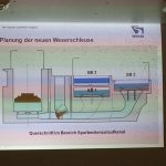 Am 29. Juli trafen sich 20 Interessierte in Minden, um den Neubau der Weserschleuse zu besichtigen. Der Arbeitskollege von Detlef Müller, namens Hönnig zeigte der Gruppe ein Modell des Schleusengeländes. Zwei Frauen aus der Gruppe, Anika und Jana waren bereit zu dolmetschen.