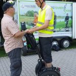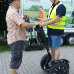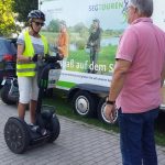 Nach einer fachkundigen Einführung und Probefahrt ging es vom Obersee aus mit dem elektrisch angetriebenen Einpersonen-Roller Richtung Nordpark. Die ausgewählten Waldwege, Wiesen und verkehrsarmen Straßen waren ideal mit dem Segway zu bewältigen. Nach einem kleinen Stopp (Pause) ging es weiter zurück zum Ausgangspunkt zum Obersee. Insgesamt dauerte 3 Std. Allzu schwer war die Bedienung auf den ersten Blick nicht. Einfach nach vorne lehnen und schon düst man los.” Um das Segway zu beherrschen, mussten die 12 Teilnehmer aber in die Technik eingeführt werden. Wirklich wiederholungswert, absolutes geiles Erlebnis, Fahrspaß! Wetterfaktor: sonnig, 29 Grad