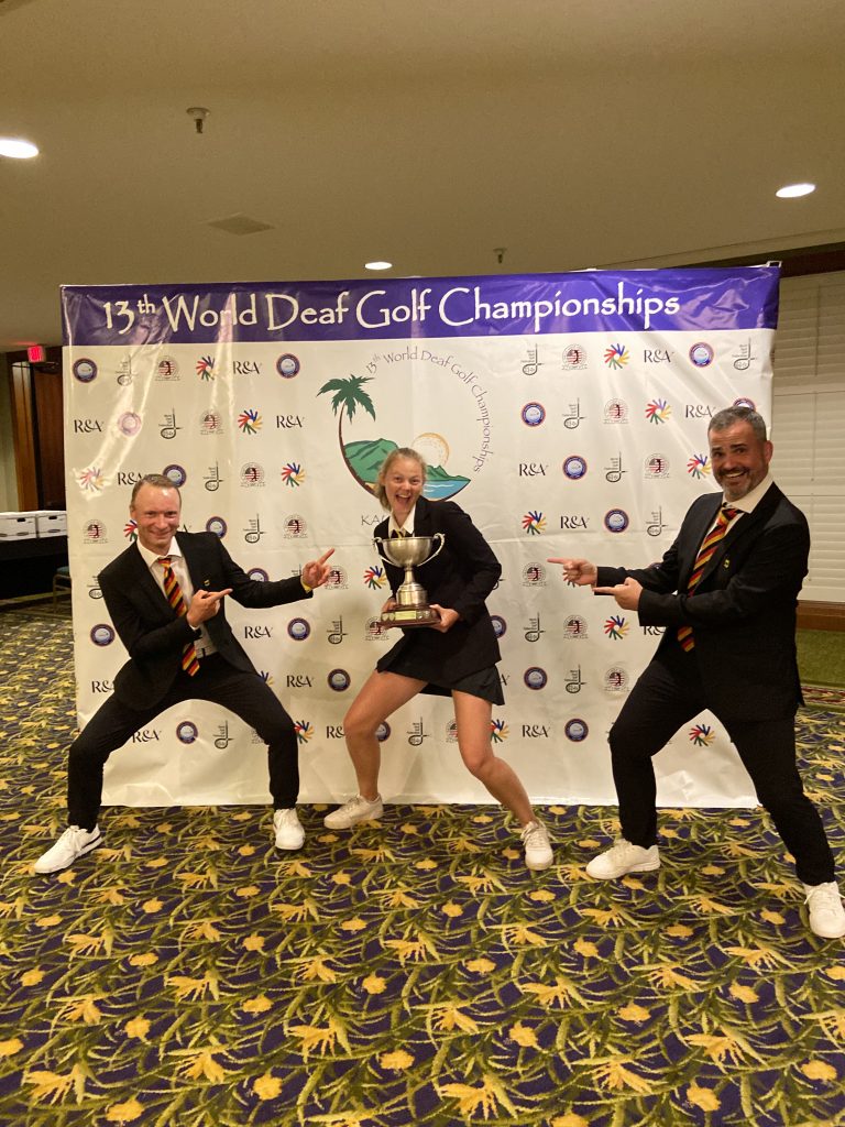 Was für ein Erfolg!!! Vom 15.10.- bis 22.10.2022 fand die 13. World Deaf Golf Championships auf Kaua’i/Hawaii statt und die deutsche Nationalmannschaft holt 5 Medaillen davon 3x Gold und 2x Bronze. Unsere Golferin Vanessa Girke holt im Einzel und Teamwertung (Damen) den WM-Titel somit ist sie 2xfache Weltmeisterin. Was für eine Leistung! Unglaublich! Dafür möchten wir sie nochmal herzlich gratulieren.